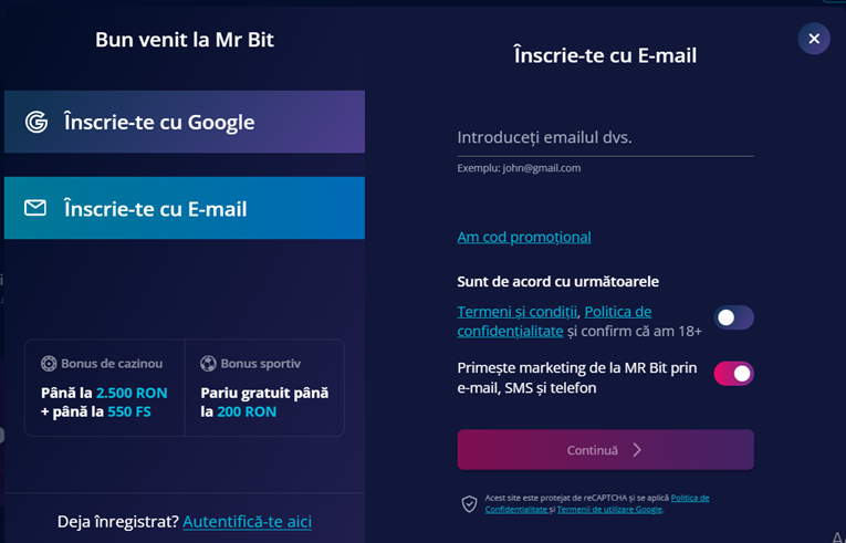 Pentru a începe la Mr.Bit Casino, trebuie să îți creezi un cont pe platformă. După activarea contului și verificarea identității, poți face prima depunere și începe să explorezi jocurile disponibile, inclusiv sloturi, jocuri de masă și cazino live.